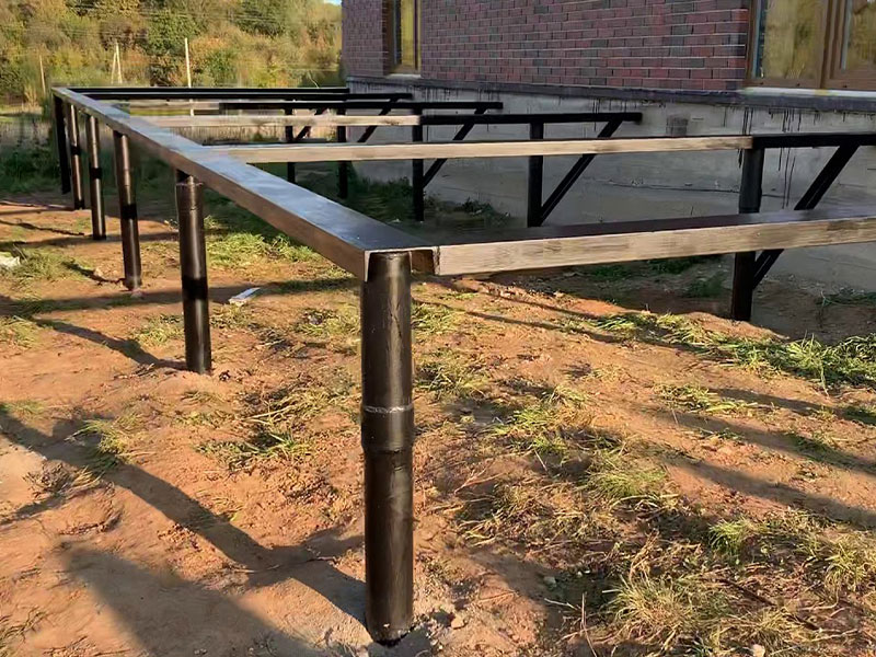 Для определения типа почвы и уклона участка выполняется пробное бурение. Мастер рассчитывает необходимую длину и диаметр опорных стержней. По результату расчета изготавливаются сваи.