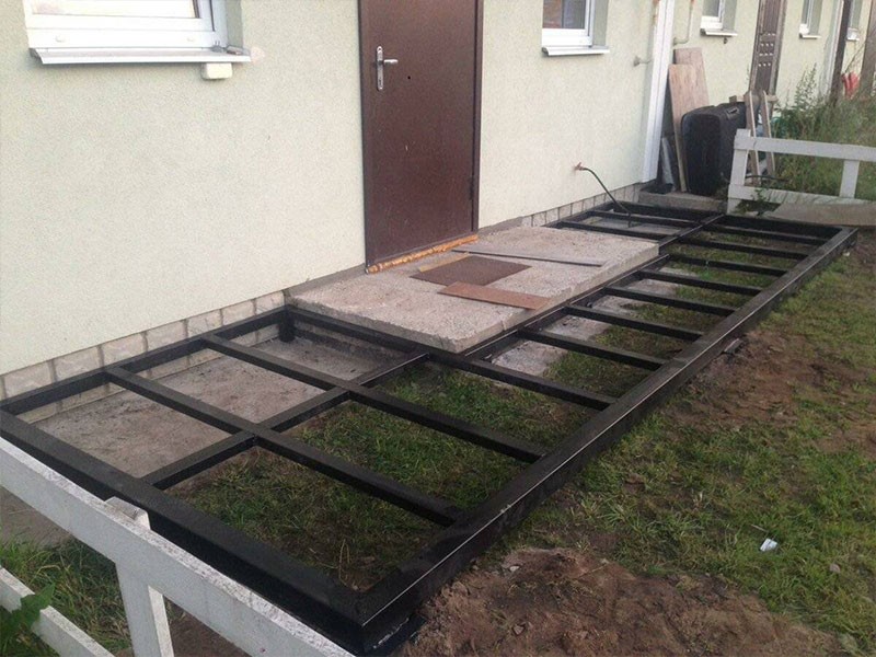 От весовой нагрузки сооружения зависит толщина и диаметр свай, который будет использоваться при сооружении крыльца. Больше вес – больше диаметр. Сваи 57, 76, 89 мм – подходящий вариант для строительства фундамента под крыльцо и лестницу.